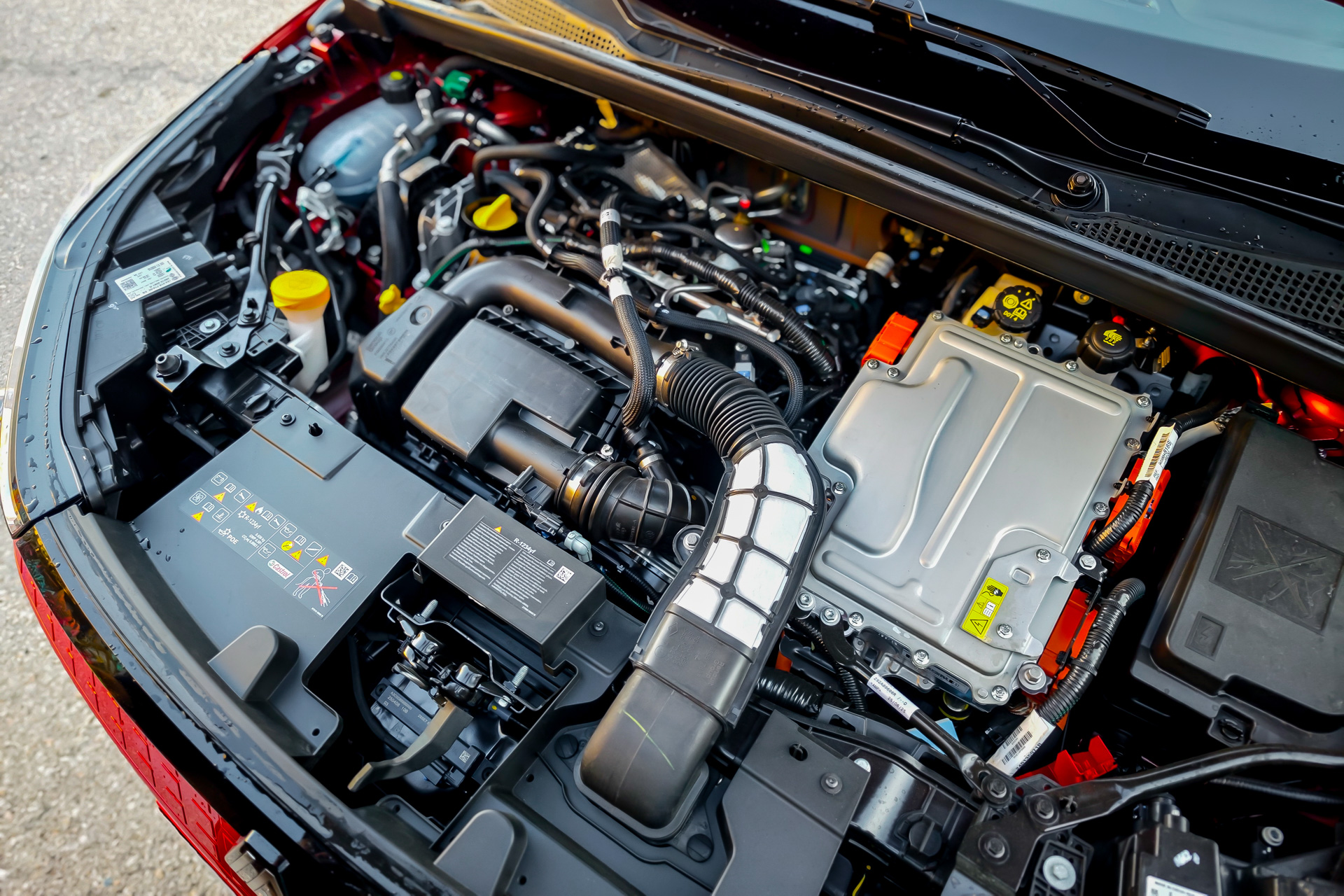 Η υβριδική εκδοχή του Renault Captur εξοπλίζεται με έναν τετρακύλινδρο βενζινοκινητήρα άμεσου ψεκασμού χωρητικότητας 1,8 L που αποδίδει 109 PS, σε συνδυασμό με δύο ηλεκτροκινητήρες, οι οποίοι αποδίδουν 49 και 20 PS, αντίστοιχα, καθώς και μια νέα μπαταρία ιόντων λιθίου ενεργειακής χωρητικότητας 1,4 kWh.