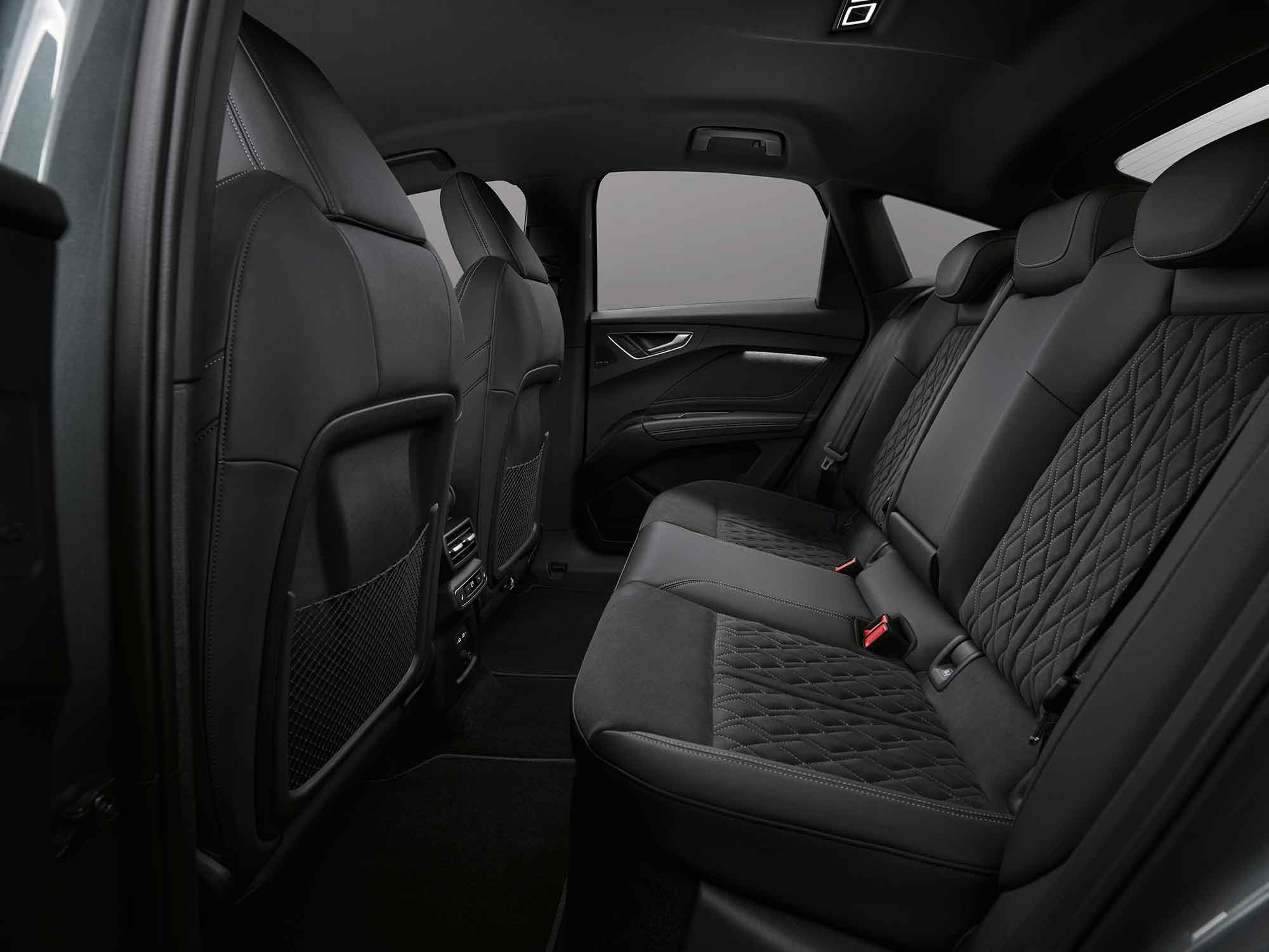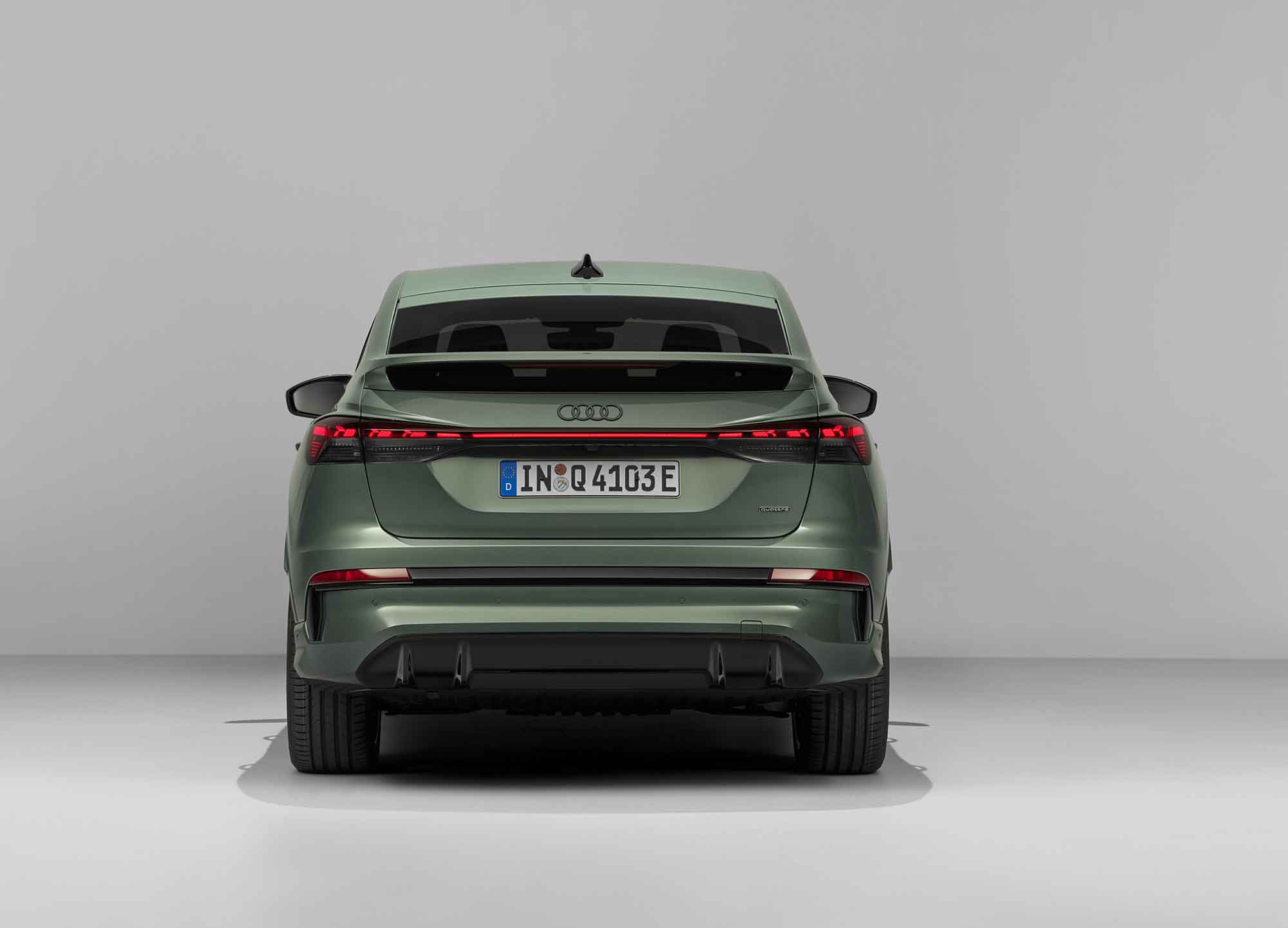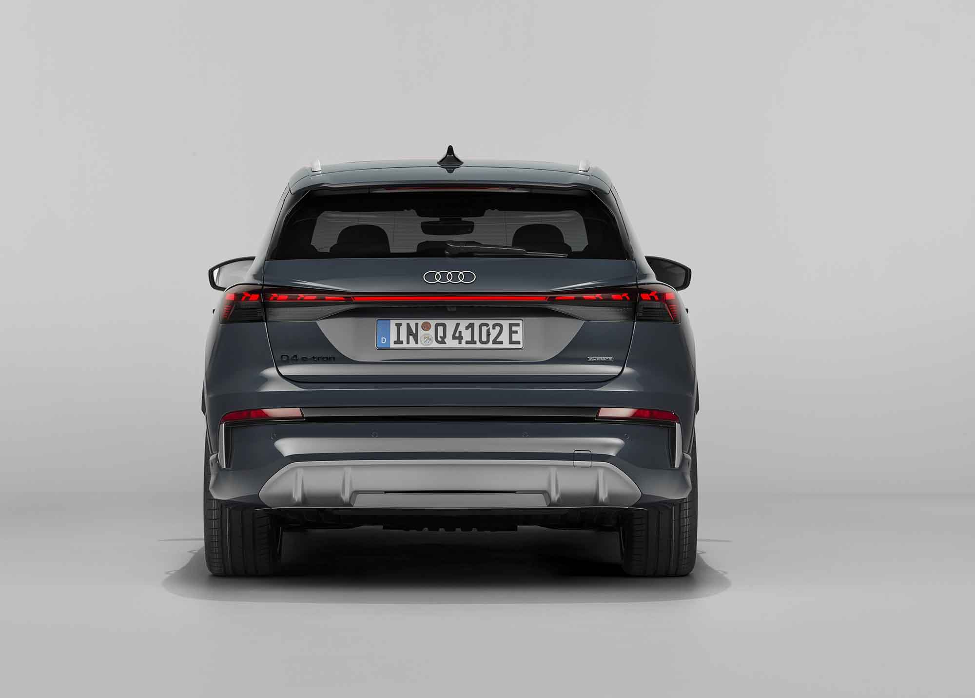 Πίσω, τα ψηφιακά OLED φώτα δεύτερης γενιάς αναβαθμίζουν τη σχεδίαση, τη λειτουργικότητα και την ασφάλεια. Το σύστημα προειδοποίησης εγγύτητας ενημερώνει τα οχήματα που ακολουθούν όταν πλησιάζουν υπερβολικά ένα σταματημένο Q4 e-tron.