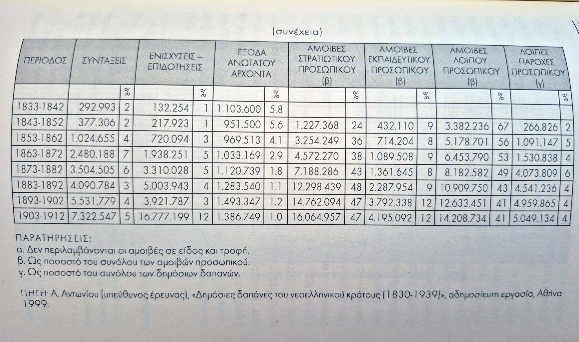 * Πηγή πίνακα: Κώστας Κωστής, Ξανακοιτώντας την Ιστορία του κράτους στην Ελλάδα. 19ος-20ός αιώνας, Πατάκης, 2024.
