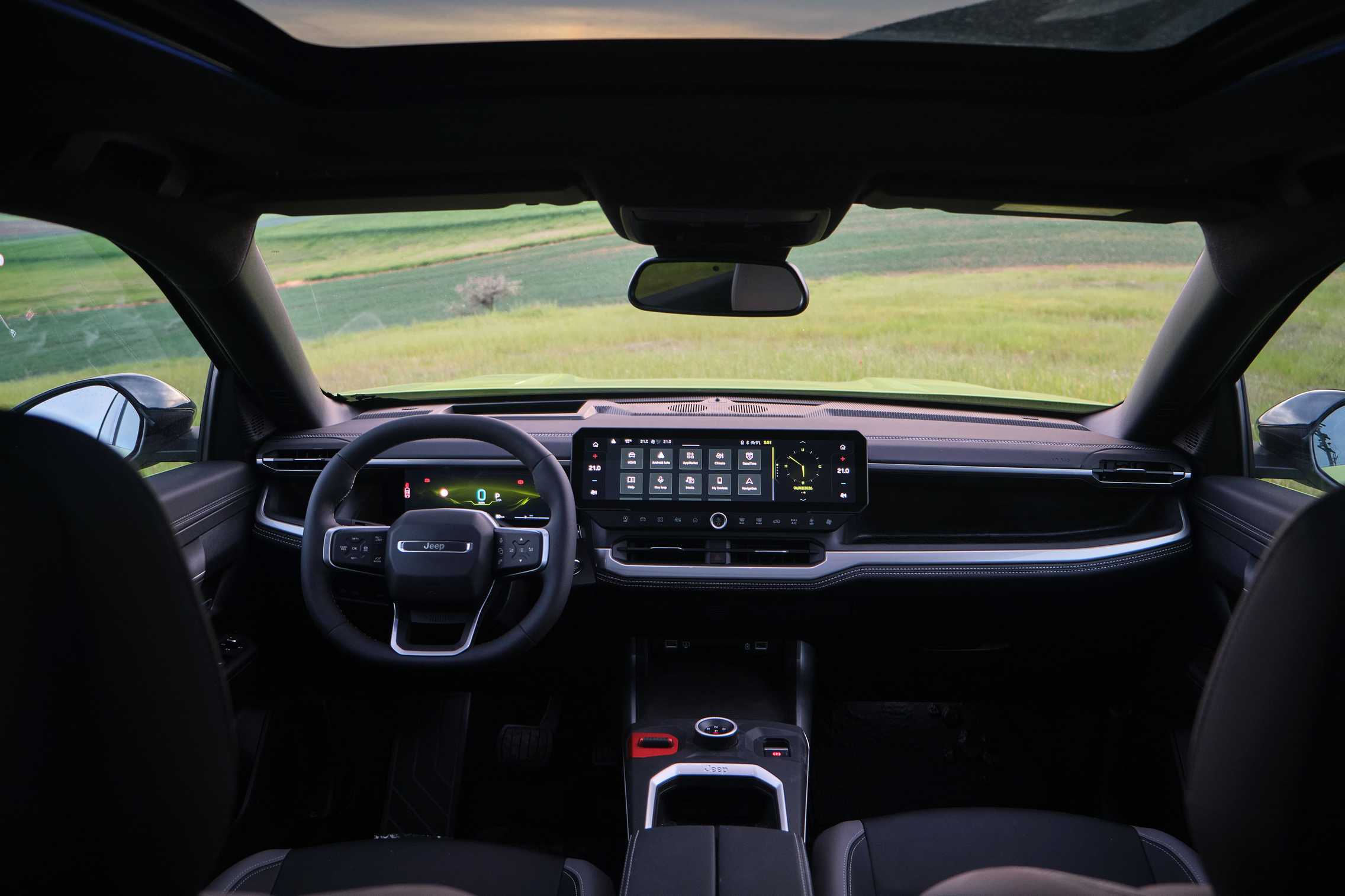Η ανάρτηση είναι άνετη και μόνο σε κάποιες λίγες απότομες εγκάρσιες ανωμαλίες δεν πρόλαβε να διαβάσει το ανάγλυφο του δρόμου ενώ και στην εκτός δρόμου χρήση θα θέλαμε λίγο καλύτερη άνεση. Ωστόσο βγάζουμε το καπέλο στην Jeep που μέσα στο πρόγραμμα οδήγησης περιελάμβανε και χώμα. Στα μεγάλα νεροφαγώματα δεν τρόμαξε και πέρασε χωρίς να γρατζουνίσει ούτε ένα εκατοστό του αμαξώματός του ενώ μέσω του Selec-Terrain μπορείς να επιλέξεις το οδηγικό προφίλ Sand/Mud περνώντας με μεγαλύτερη άνεση τις κακοτοπιές. Σε στριφτερή ασφάλτινη διαδρομή με το πρόγραμμα οδήγησης Sport ο ρυθμός είναι τόσο υψηλός που πρακτικά δεν θα χρειαστείτε κάτι παραπάνω στην πραγματική ζωή. Το Compass ακόμα και έτσι, υπό πίεση, παραμένει συμπαγές και με λογικές κλίσεις στον δρόμο. Στον ανοικτό δρόμο εντυπωσιάζει με το χαμηλό επίπεδο θορύβου την απουσία αεροδυναμικών θορύβων και το πολιτισμένο περιβάλλον που θυμίζει κάτι από λιμουζίνα.