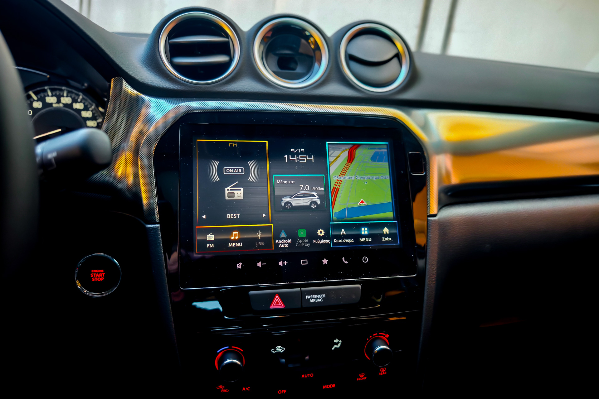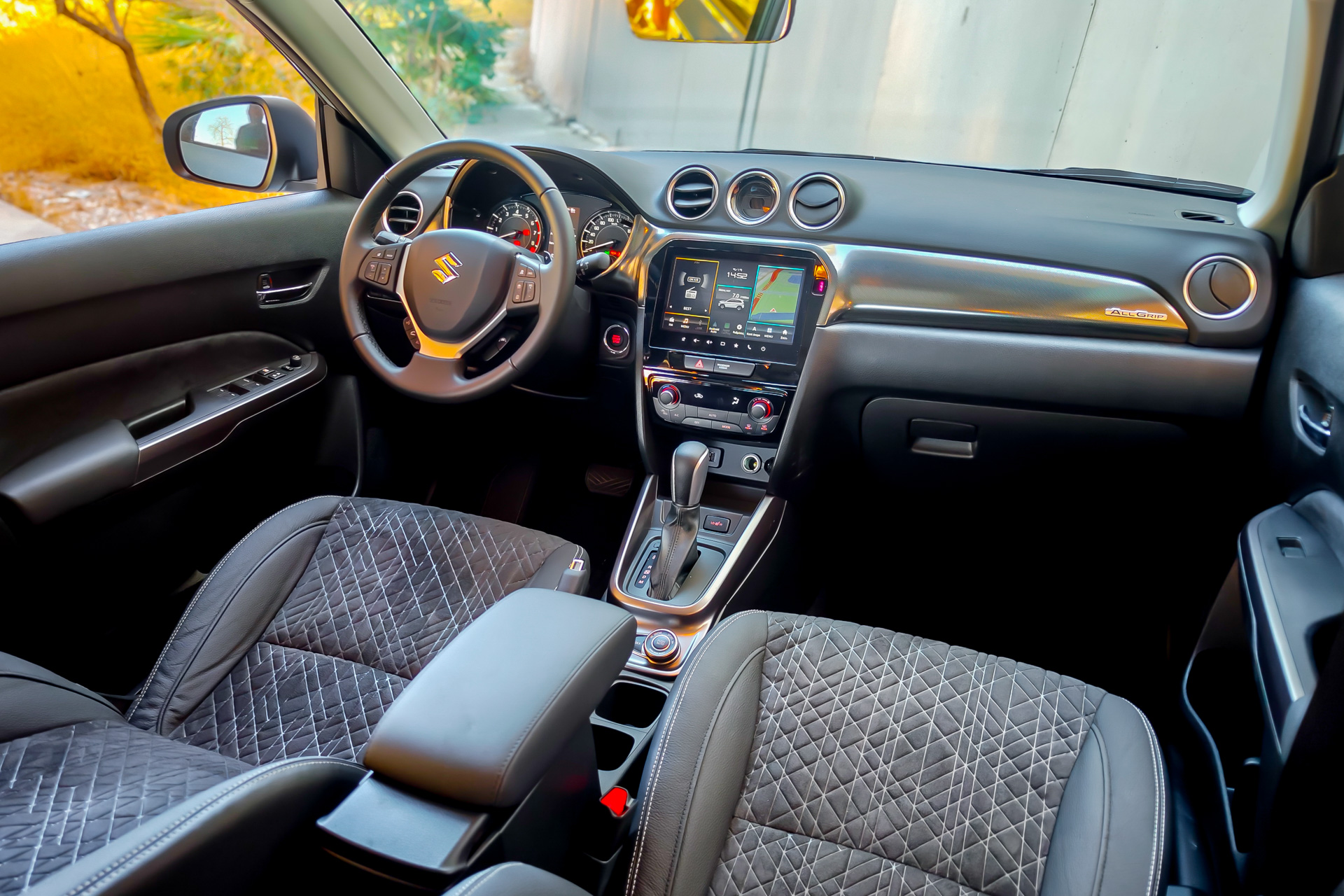 Ο ατμοσφαιρικός βενζινοκινητήρας των 1,5 λίτρων καταργείται. Έτσι, η Suzuki παραμένει με τον παλιό καλό και αξιόπιστο 1.4 Boosterjet με το ήπιο σύστημα Hybrid 48V (προσαρμοσμένο στη νόρμα Euro 6e-bis), που αποδίδει πλέον «μόνο» 110 PS από 129 PS σε σύγκριση με την προηγούμενη έκδοση, με τη ροπή να παραμένει στα 235 Nm. Ο λόγος για αυτή την παράδοξη απόφαση –η αλήθεια είναι ότι μόλις επικοινωνήθηκε αυτή η αλλαγή όλοι μας απορήσαμε– είναι αφενός η κατανάλωση καυσίμου και αφετέρου οι εκπομπές CO?. Αυτός ο 1.400άρης συνεργάζεται με ένα ήπιο υβριδικό σύστημα που συνδυάζεται με χειροκίνητο κιβώτιο έξι ταχυτήτων ή το εντελώς νέο αυτόματο κιβώτιο έξι ταχυτήτων, με paddles αλλαγών στο τιμόνι και επιλογή χειροκίνητης λειτουργίας. Το σύνολο διατίθεται σε εκδόσεις 2WD ή AWD AllGrip, που ήταν και το αυτοκίνητο της δοκιμής μας. Στα του ήπιου 48V υβριδικού συστήματος να πούμε ότι είναι κατά τι πιο ισχυρό από της προηγούμενης έκδοσης, αφού έχει μεγαλύτερη μπαταρία με χωρητικότητα 0,38 kWh, έναν ηλεκτροκινητήρα που αποδίδει 17 ίππους και ροπή 50 Nm. Όπως είναι αναμενόμενο για τέτοια επιλογή, το mild hybrid προσφέρει ηλεκτρική υποβοήθηση στις επιταχύνσεις και άλλες ήπιες λειτουργίες, μειώνοντας ουσιαστικά την κατανάλωση και τους ρύπους.