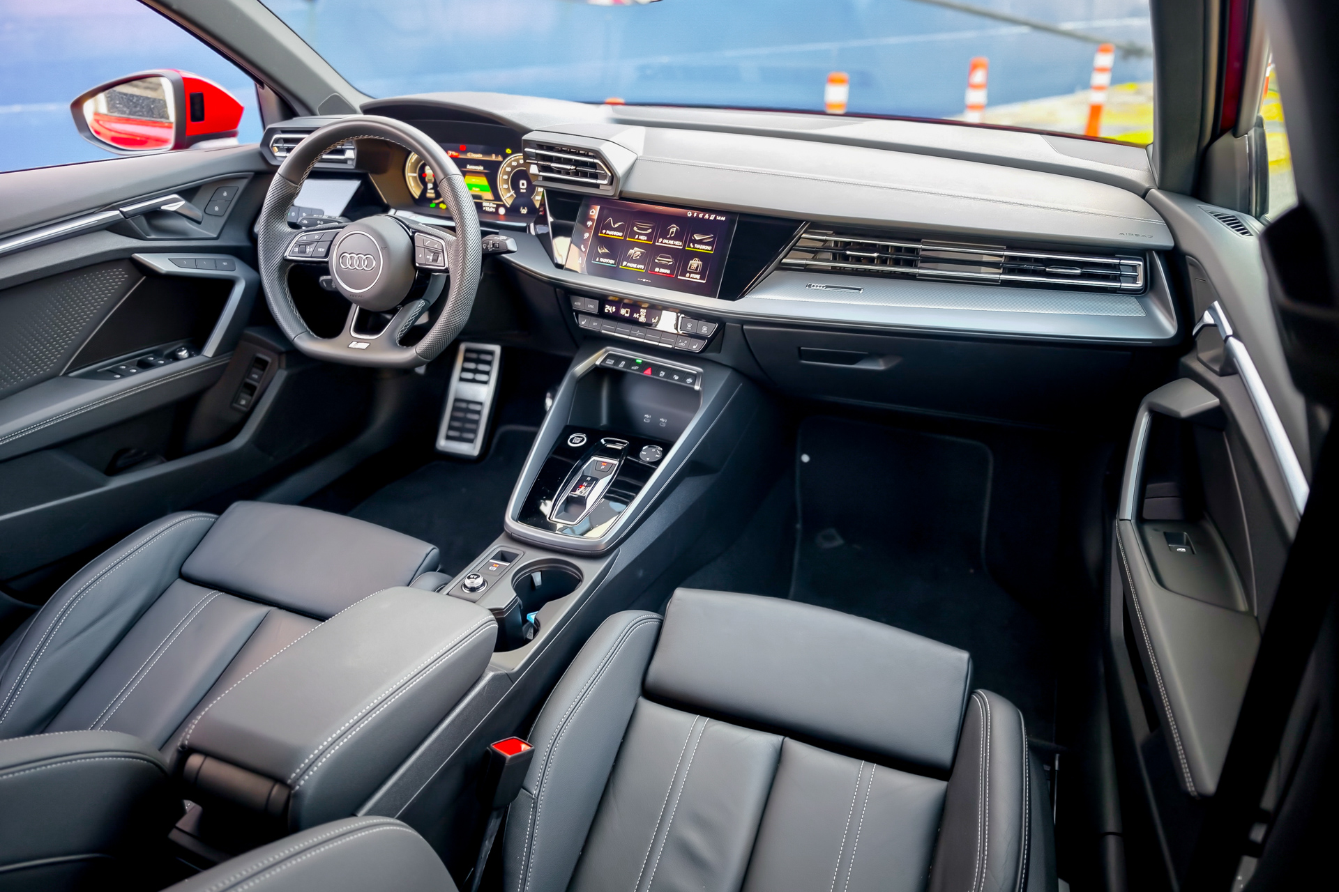 Η φόρτιση μπορεί να γίνει εύκολα σε οικιακό ή δημόσιο AC φορτιστή. Η τεχνολογική βάση του μοντέλου ολοκληρώνεται από τον γνωστό βενζινοκινητήρα 1.5 TFSI evo2 απόδοσης 177 PS με πολλά τεχνολογικά ευρήματα, ο οποίος συνεργάζεται με έναν ισχυρό ηλεκτροκινητήρα 85 kW (116 PS). Η συνδυαστική απόδοση φτάνει τα 200 kW (272 PS) και τα 400 Nm ροπής, δημιουργώντας ένα σύνολο που συνδυάζει επιδόσεις και αποδοτικότητα. Στην πράξη, η επιτάχυνση είναι άμεση και δυναμική, με το 0-100 km/h να ολοκληρώνεται σε μόλις 6,3 sec, ενώ η υβριδική λειτουργία εξασφαλίζει χαμηλή κατανάλωση στην καθημερινή χρήση. Για να έχετε μια τάξη μεγέθους, το hardcore S3 των 333 PS έχει 420 «θερμικά» Nm ροπής και 0-100 km/h σε 4,7 sec. Η φιλοσοφία του συστήματος σε τούτη την υβριδική έκδοση δεν βασίζεται μόνο στη δύναμη, αλλά και στην έξυπνη διαχείριση της ενέργειας.