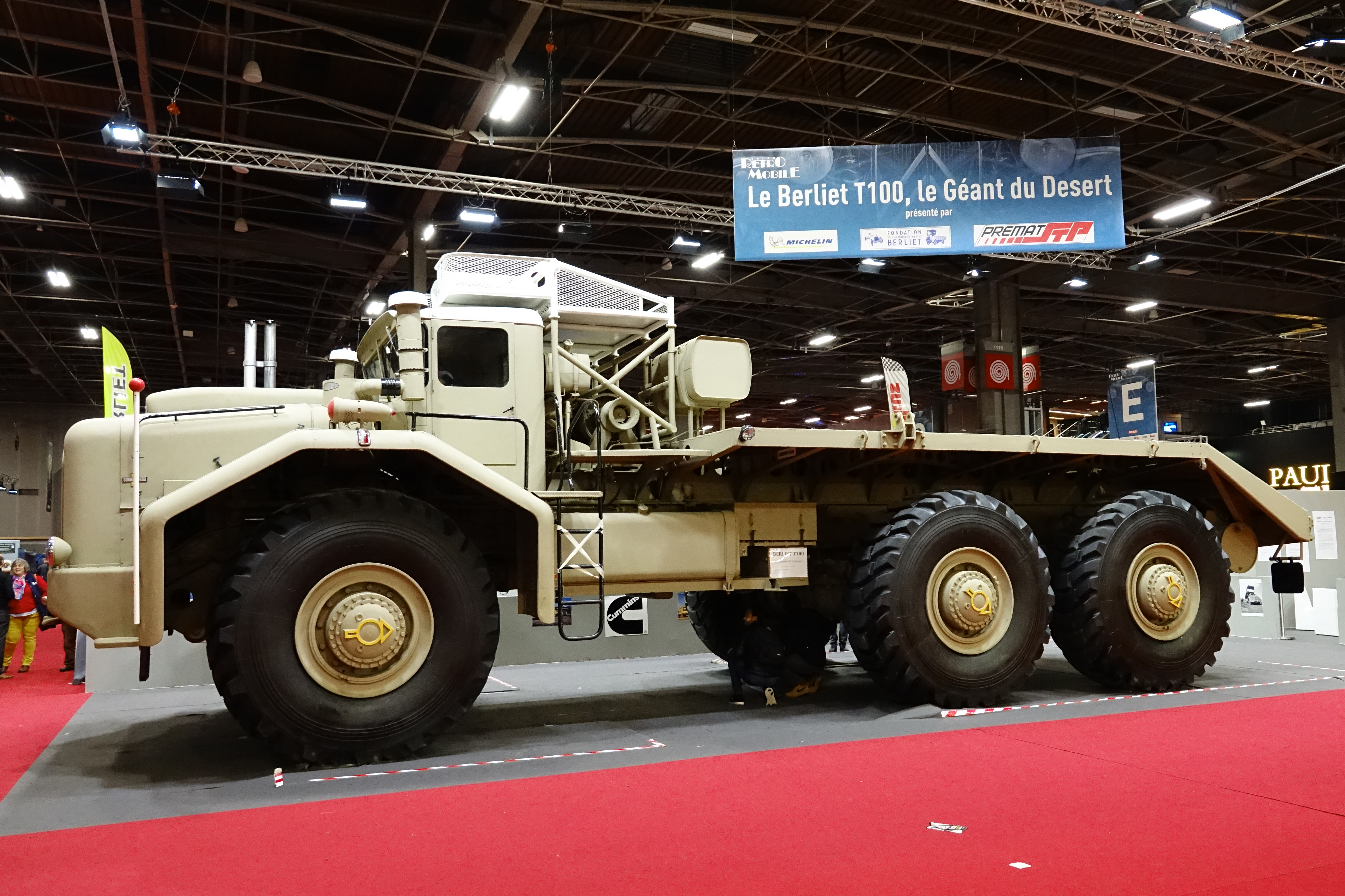 Το 1957, στο Σαλόνι Αυτοκινήτου του Παρισιού, η Berliet παρουσίασε το T100, 100 για το μικτό βάρος του οχήματος, 50 τόνους κενό βάρος και 50 τόνους ωφέλιμο φορτίο. Ήταν το μεγαλύτερο φορτηγό στον κόσμο, σχεδιασμένο για εξερεύνηση και εκμετάλλευση πετρελαίου στη Σαχάρα. Το κατασκεύασμα μπορούσε να μεταφέρει αντικείμενα βάρους έως και 120 τόνων και να διασχίζει πλαγιές σε άμμο με κλίση έως και 20%...